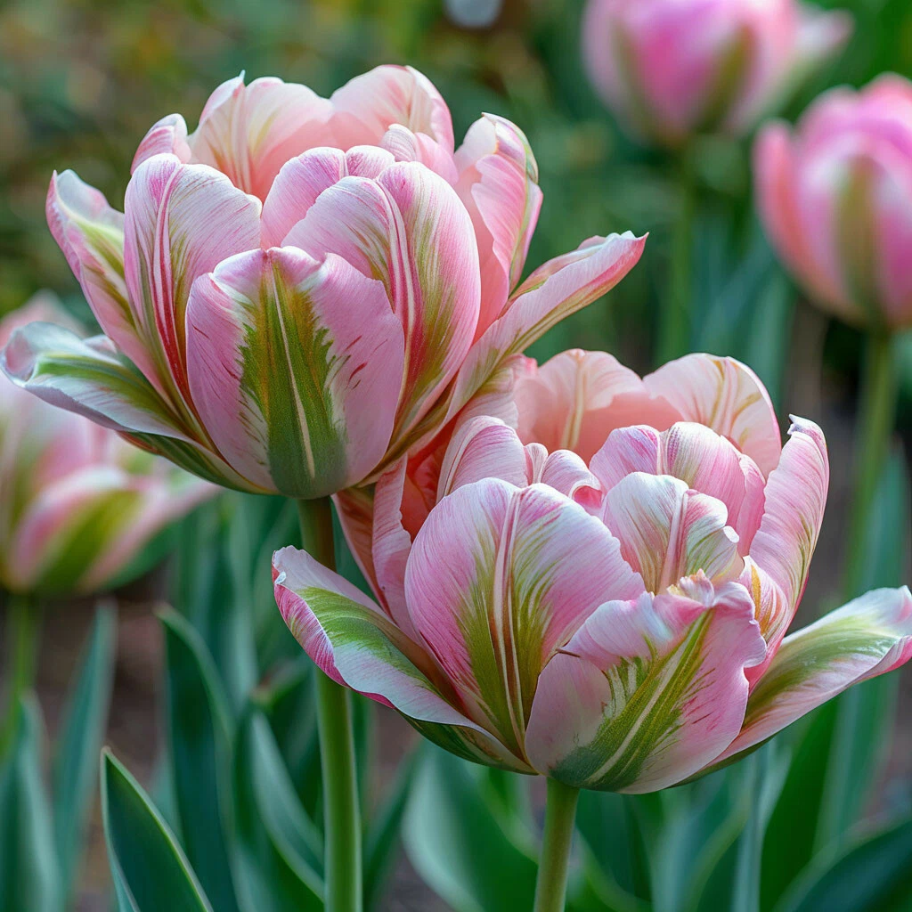 Цвет бутона: Уникальным аспектом «Авроры Принес» является ее цвет. Бутон окрашен в нежные розово-зеленые тона и украшен белыми прожилками, что делает его великолепным дополнением к весеннему саду. Такой цвет привлекает внимание и подчеркивает утонченность растения.